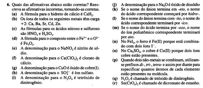 Os seguintes excercícios vêm do livro de Química de